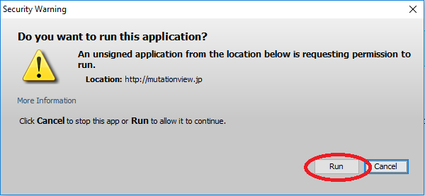 5. Access to the MutationView top page. If an error message is displayed, go to Step5: Avoid Java Application Block.