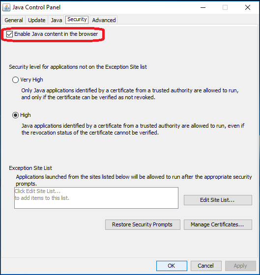 Restart your browser and confirm that Java is enabled in your browser in Step1: Confirm that Java is enabled in your browser.