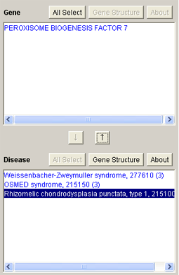 “Rhizomelic chondrodysplasia punctata, type1”の原因となる遺伝子が遺伝子名リストに表示されました。
