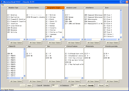 表示させる種別を選択します。“Disease Name”中の“Rhizomelic chondrodysplasia punctata”を選択しました。この選択した状態で[Re-count]ボタンを押します。