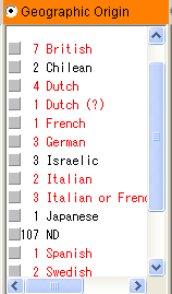 グループ化したい種別を右クリックすると選択されたものは赤色の文字になります。ここではヨーロッパ人のグループを想定し、“British”、“Dutch”などを選択しています。グループ化するものをすべて選択したら[Ctrl]+クリックを押します。