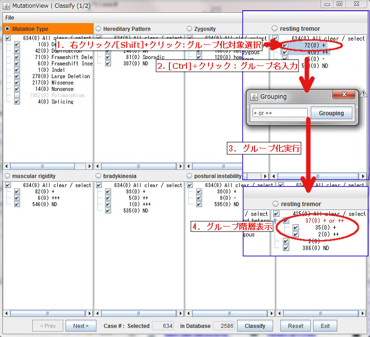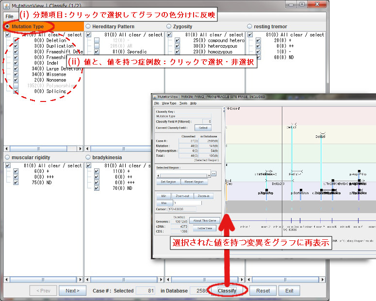 Gene Structure windowのメニュー[Classify]でClassifyウィンドウが表示されます。