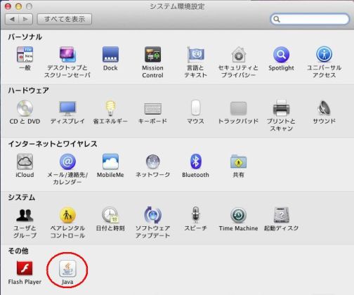 画面左上のAppleアイコン→[システム環境設定]→[Java]アイコンをクリック