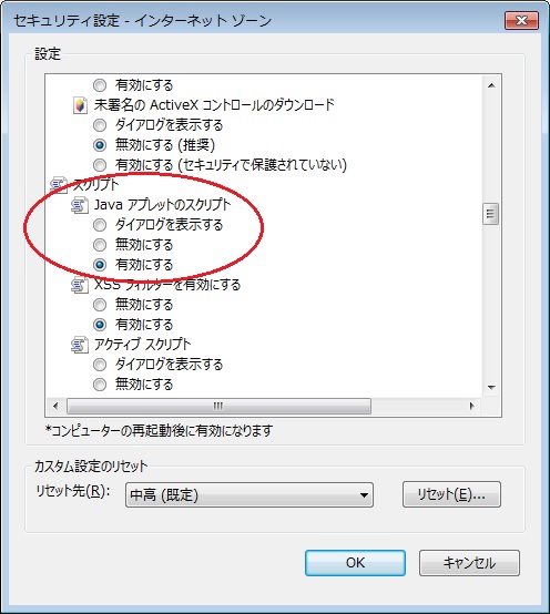 3. [スクリプト]下の[Javaアプレットのスクリプト]で[有効にする]を選択します。