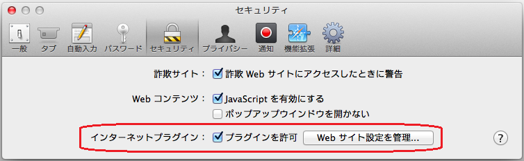 ブラウザのJava有効化 (Safari)