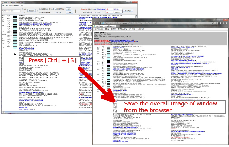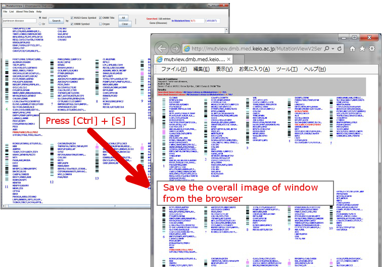 When pressing [Ctrl] and [S] while Chromosome Details window is located at the foreground, the overall image of the displayed Chromosome Details is created by the server, and can be saved from the browser.