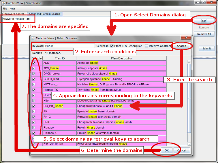 7. You can specify a retrieval key to search for genes by selecting domain in Selected Domains dialog.