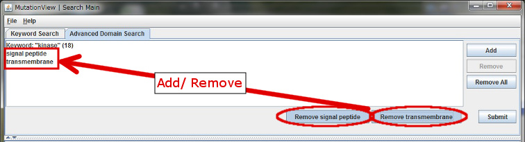 By clicking the [Add signal peptide]/ [Remove signal peptide] button, you can add or remove signal peptide as a retrieval key.